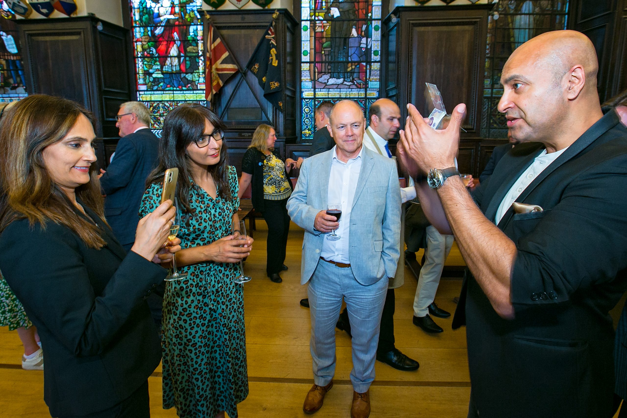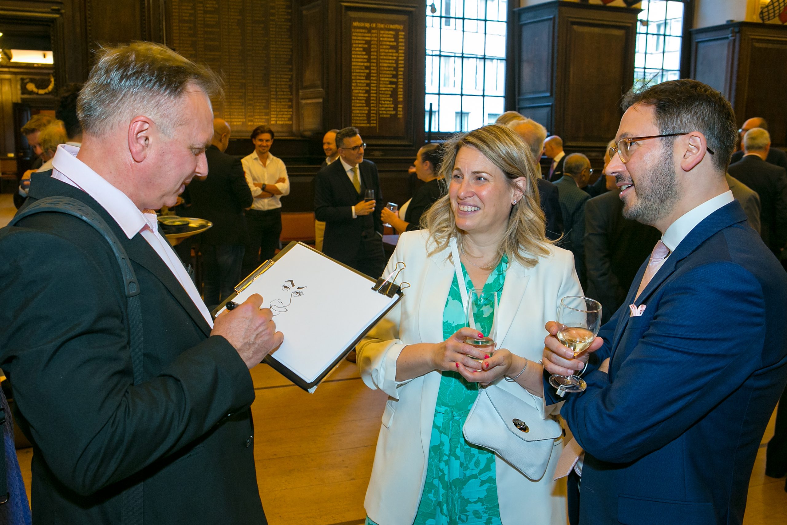 Amongst the magnificent history of the venue and its hidden oasis, drinks and canapes were flying whilst guests were blown away by mingling contemporary street magician, Ifty and, Ivo the caricaturist.